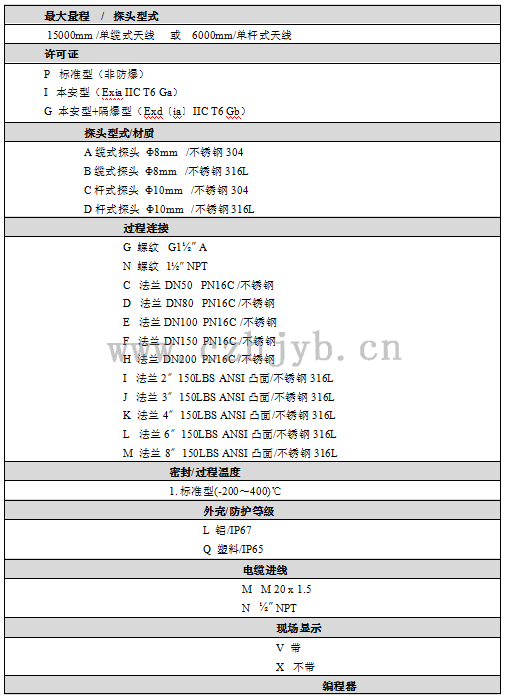 本產(chǎn)品的防爆形式為本質(zhì)安全型。防爆標志:Exia IIC T6。本安型導波雷達物位計采用壓鑄鋁外殼材料,電子部件采用膠封 結(jié)構(gòu),從而確保電路部分故障時產(chǎn)生的火花不會泄放出來。本產(chǎn)品適用于Exia IIC T6 防爆等級以下可燃性介質(zhì)的物位連續(xù)測量。