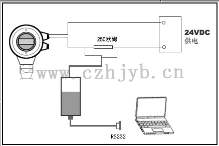 使用軟件調試的時候,給雷達儀表加電24VDC,同時在連接HART適配器前端加一個250歐姆的電阻。如果一體式HART電阻(內部電阻250歐姆)的供電儀表,就不需要附加外部電阻,這時候HART適配器可以和4…20mA線并聯。