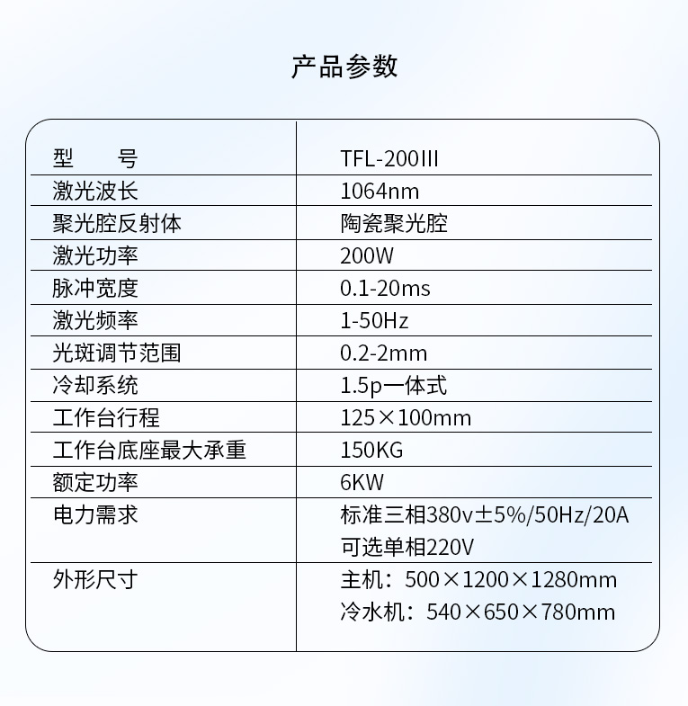 TFL-200Ⅲ型模具激光焊機是通發(fā)激光公司在TFL-180Ⅲ的基礎(chǔ)進行了改良,采用通發(fā)自主研發(fā)的二代精密單燈電源為燈泵浦驅(qū)動電源,配置觸摸屏,操作更方便。主機具備激光頭手搖升降與工作臺按鈕電動升降實現(xiàn)焊接不同厚度模具的激光焊加工。本款機型更適用于各類高精密注塑模具激光補焊,精密塑膠模具零件激光修補,塑膠模具鈹銅零件激光燒焊;可對模具使用過程中出現(xiàn)的磨損進行激光修復;對機械加工失誤、電火花加工失誤,模具減膠設(shè)計變更等需要對模具修改,起到關(guān)鍵的作用,可彌補因加工失誤造成的巨大損失。
