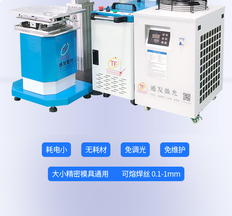1、采用光纖激光器,反射率高,能量強,免維護,免調(diào)光,功耗少,相比傳統(tǒng) 模具焊來說,體積小,安全,穩(wěn)定性好超長使用壽命。